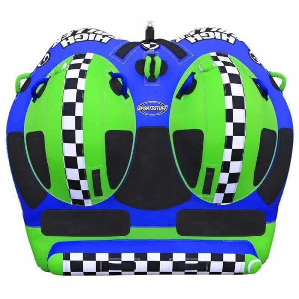 Prepare for exciting hydroplaning action with Sportstuff High Roller! The unique multi sphere design barely touches the water while towing. The strategically placed air chamber on the back top edge supports knees and feet for comfortable positioning through whips and turns. Large EVA foam body pads protect rider’s knees and legs. A multitude of foam filled handles with EVA knuckle pads provide lots of options for comfortable gripping. Equipped with Speed Safety Valve and a Kwik Connect for quick and easy rope hook ups.