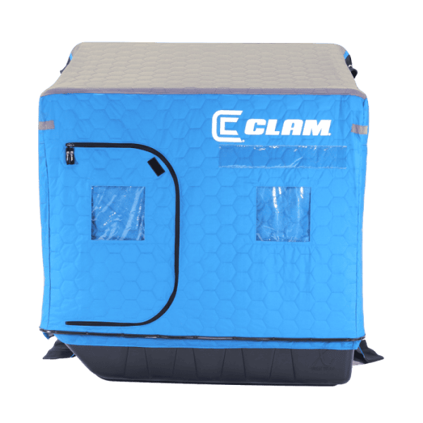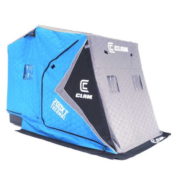 The X200 Thermal XT portable flip-over shelter by Clam Outdoors is built to withstand the harshest conditions. This shelter features a full thermal skin, comfortable seats, and a one-piece round hoop pole system with heavy-duty 1 ¼” poles, which is superior to the three-piece systems found on the market. Thirty-four square feet of fishable space allows for plenty of room to land that trophy of a lifetime. The thermal skin keeps you, your kids, or your buddies warm and comfortable all day. The side doors allow anglers to get in and out of the shelter with ease without stepping over holes or gear.